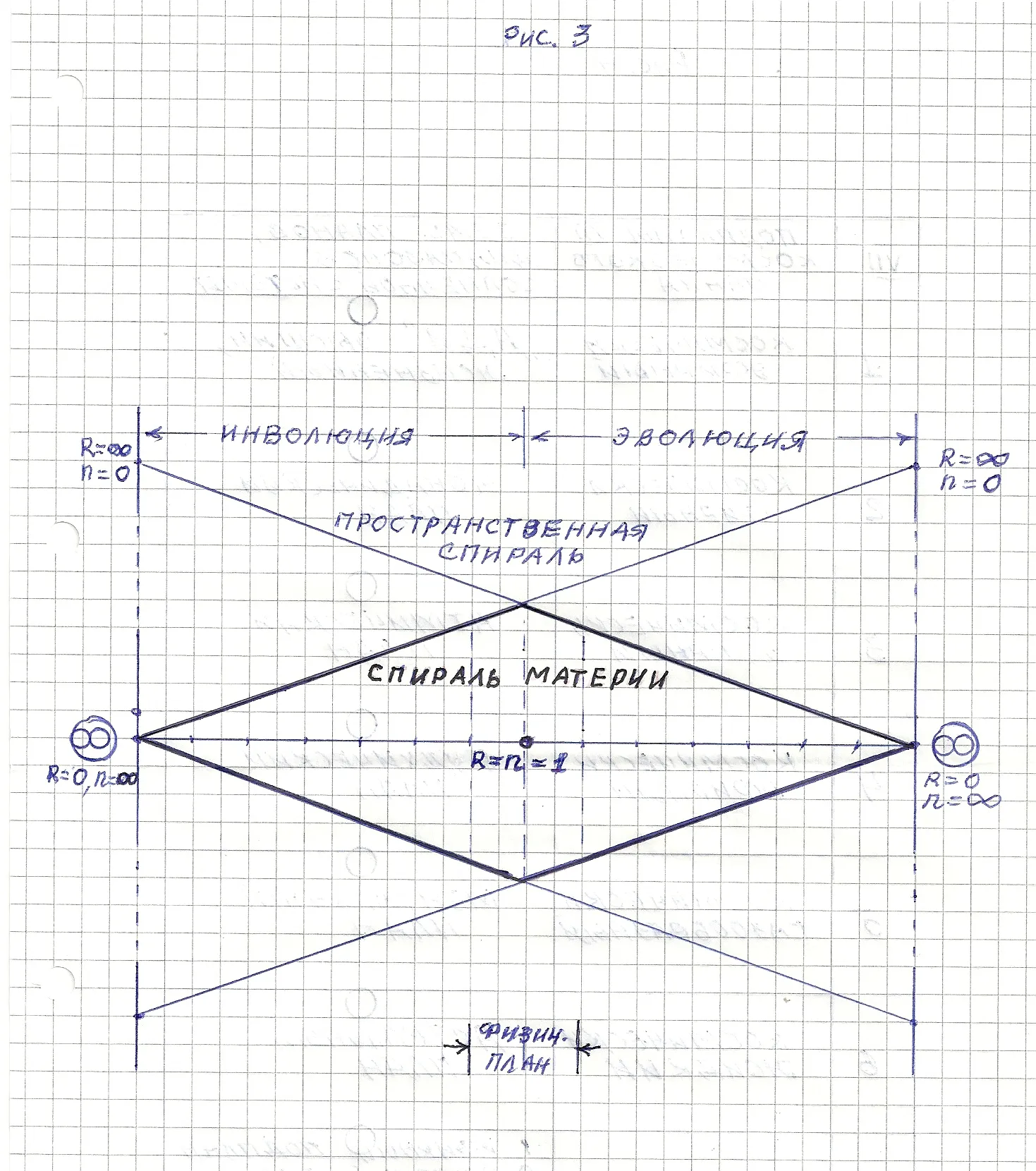 В Спирали материи – движение с центробежным вектором, а в Пространственной спирали– с центростремительным вектором. Единое Движение по кругу обусловлено взаимодействием этих векторов.