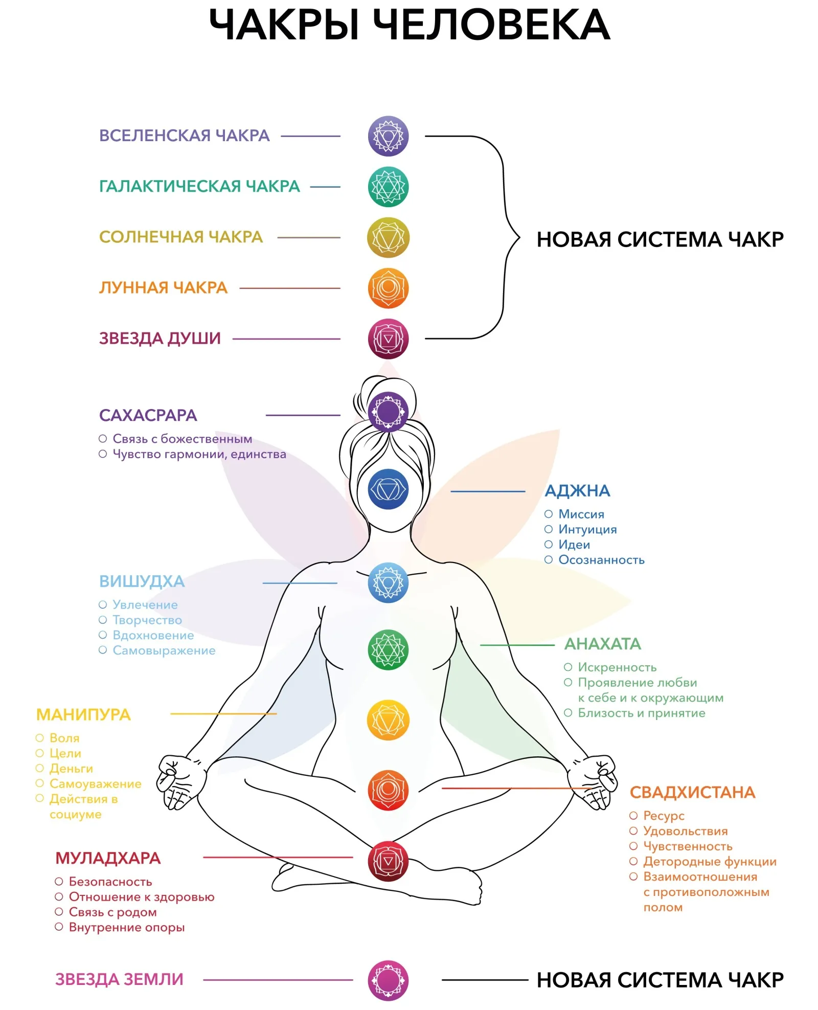 Также есть Новая система чакр, согласно которой у каждого из нас есть еще 5 дополнительных чакр – связь с Высшими Силами.