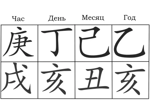 Так 【乙亥,己丑,丁亥,庚戌】: для Дин丁 – Рен 壬 ПЧ. Чоу Сюй丑戌 в конях имеют ВВ. Чоу также является еще и хранилищем Металла. В НС часа стоит 庚 и изготавливает Богатство. Этот человек в Судьбе достигнув границ 申酉 лимита, и когда приходящий Металл обрушит Ци и он умрет.