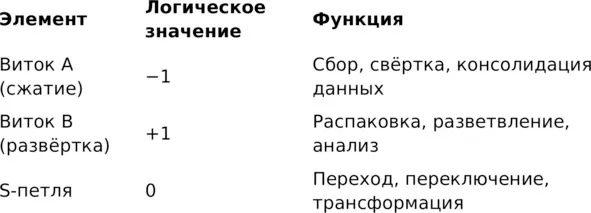 В отличие от линейного двоичного сигнала, эта модель строит замкнутую фазовую структуру, где состояние определяется не только значением, но и направлением и фазой его развёртывания.