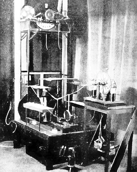 Рисунок 3.1. Динамистограф Матлы и ван Зельста. Фото из книги: Matla, J.L.P.W., Zaalberg von Zelst, G.J.: Le Mystère de la Mort. Dynamistographie. Paris, 1912. Автор неизвестен