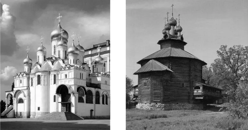 При входе в храм снаружи устраивается паперть(площадка, крыльцо). Внутри храм разделяется на три части: 1) притвор, 2) собственно храм, или средняя часть храма, где стоят молящиеся и 3) алтарь, где совершаются священнослужителями богослужения и находится самое главное место во всем храме – святой престол, на котором совершается таинство святого причащения.
