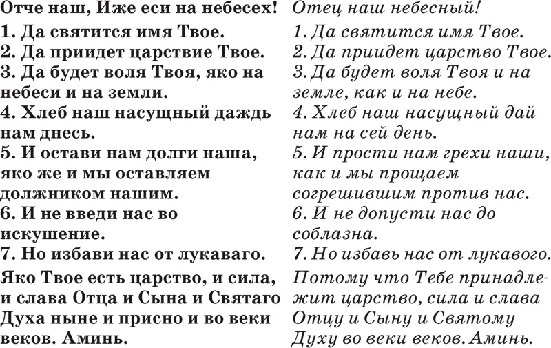 Она разделяется на: призывание, семь прошений, или 7 просьб, и славословие.