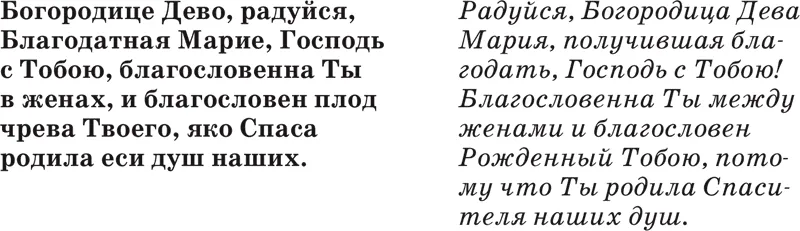 Молитва эта называется еще ангельским приветствием, так как в ней есть слова ангела (архангела Гавриила): радуйся, Благодатная Мария, Господь с Тобою; благословенна Ты в женах, которые он сказал Деве Марии, когда явился к Ней в город Назарет, чтобы возвестить Ей великую радость, что от Нее родится Спаситель Мира. Также – благословенна Ты в женах и благословен плод чрева Твоего, сказала Деве Марии, при встрече с Нею, и праведная Елисавета, мать святого Иоанна Крестителя.