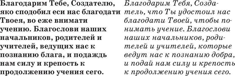 Молитва эта – Богу Отцу. В ней мы сначала благодарим Бога, что Он послал помощь понять преподаваемое нам учение. Потом просим Его послать милость Свою нашим начальникам, родителям и учителям, которые дают нам возможность узнать все хорошее и полезное; и, в заключение, просим нам дать здоровье и охоту, чтобы мы с успехом продолжали учение.