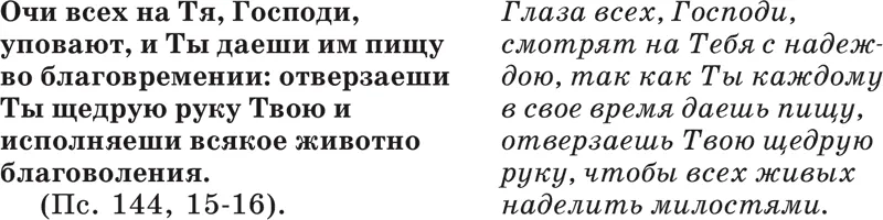 В этой молитве мы выражаем уверенность в том, что Бог пошлет нам пищу в свое время, так как Он не только людям, но и всем живым тварям подает все нужное для жизни.