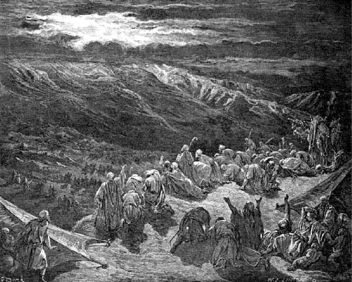 От Чермного моря евреи все время шли по пустыне. Они остановились станом у горы Синая (Синай и Хорив – две вершины одной и той же горы). Здесь Моисей взошел на гору, и Господь сказал ему: «Так скажи сынам израилевым: если будете слушаться голоса Моего, то будете Моим народом».