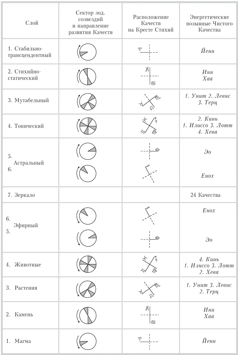 Дело в том, что будущие Цари Зон этого Качества еще не рождены, а Мастера еще не вступили в работу. Эти Качества будут осваиваться Землей-Алес последними, заключая ее цепь исполнения Плана. Пока же ниша этих Мастеров занята перемешанным фантомным материалом эманаций предыдущих Качеств, а соответствующий материал не освоен и находится в слабо структурированном состоянии в Астральном слое. Более подробно вы можете узнать об этом из предыдущих книг серии «Книга Жизни», а мы в дальнейшем будем касаться этих сведений постольку, поскольку они относятся к нашей теме, в разговоре о направлении дальнейшего развития человека и Земли в целом.