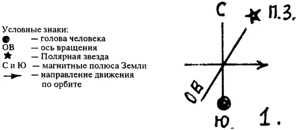 Ребенок в утробе матери (2) расположен наоборот головой к северному магнитному полюсу, т. к. мать отталкивает плод, а затем он сам накапливает энергию и уходит, раздвигая себе путь и помогая себя изгонять.