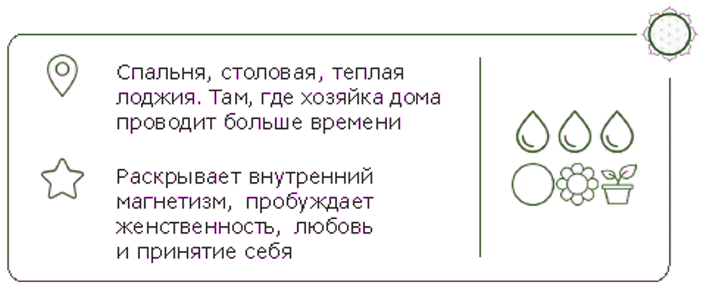 ● Оберегает любовь и гармонию, снимает стресс, благоприятна для сна.