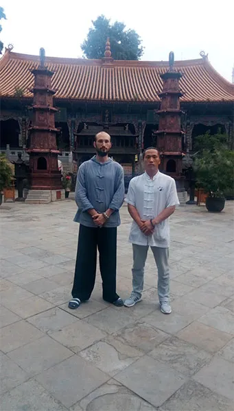 Он, будучи мирянином, вёл занятия для монахов этого храма. Именно так. В большинстве случаев в современном Китае абсолютное большинство монахов не владеют никаким гун-фу. Едят и спят. Хорошо же, что есть и те, которые обучаются даосской практике. В данном случае у мастера Шу.