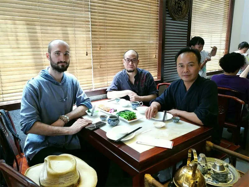 Два моих знакомых даоса встретили в Гуанчжоу и сразу повели угощать обедом в ресторан гуандунской кухни. Как мог отбивался, но отказ они не принимали)). Как думаете, о чём разговаривали за две минуты до фотографии?