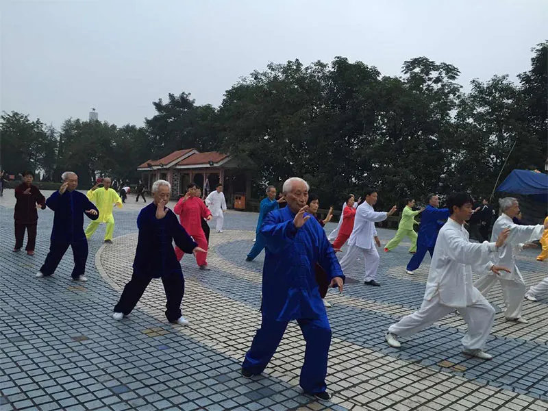 Среди них был 86-летний господин Ван, изучающий тайцзицюань на протяжении половины своей жизни (он на фото в синем костюме). А также его дочь, также ученица мастера Сяо шифу (肖师傅).