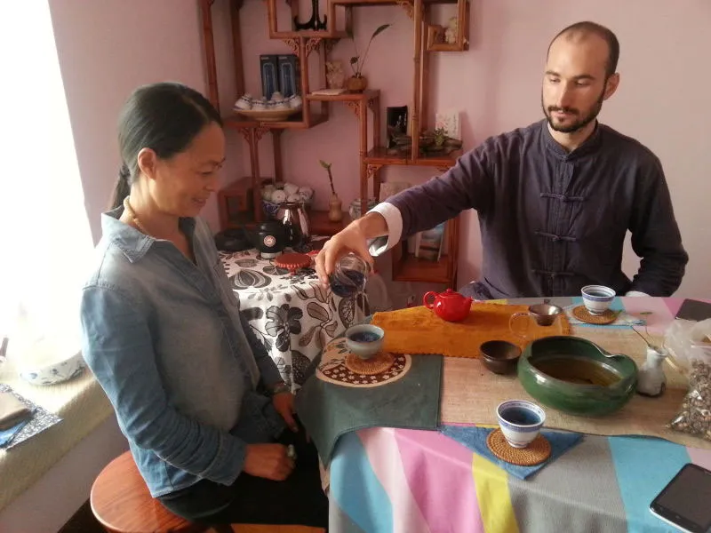 После занятия госпожа Ван пригласила нас с настоятелем Сяо отобедать втроём. Организатором этих мероприятий как раз выступала она и её отец. Их семья содержит несколько чайных домов, потому тем для разговора оказалось много. Сяо шифу всячески расхваливал меня за трапезой. Когда же госпожа Ван узнала о моём интересе к даосской чайной традиции, то попросила мою скромную персону провести для неё небольшое занятие в их чайном доме.