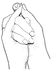 1. Мизинцем, безымянным и средним пальцами правой руки обхватите большой палец левой руки.