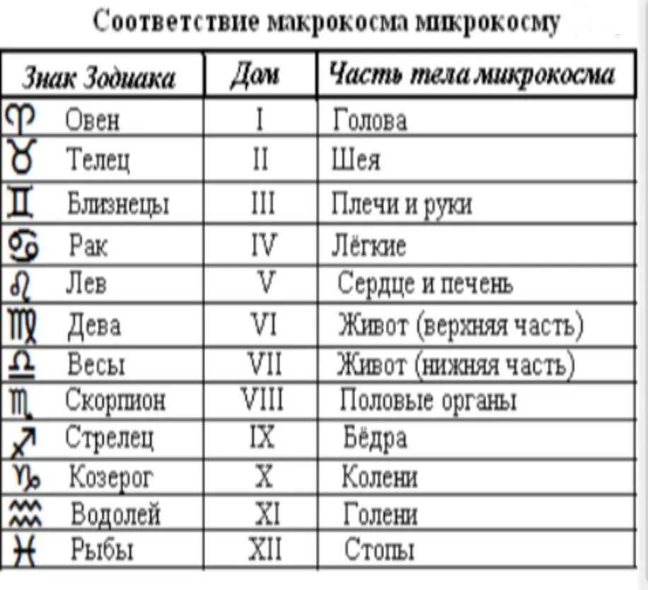 12 знаков Зодиака связаны с определенными частями и органами физического тела, а сам человек является 13-м знаком «Змееносцем».