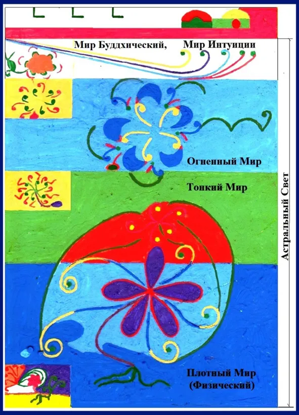 Итак, сформированы семь миров: Божественный, Монадический, Атмический (Разумный), Буддхический (Интуиции), Огненный, Тонкий и Плотный (Физический).