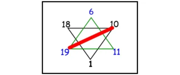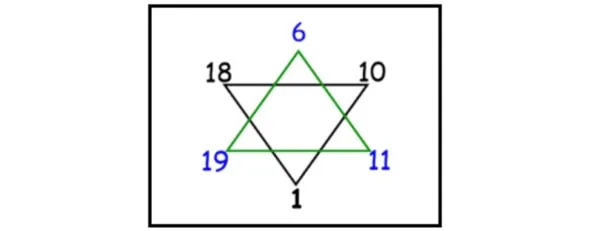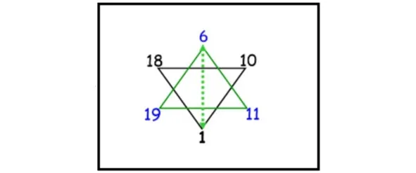• 1 способ: Суммируем числа из противоположных углов гексаграммы.