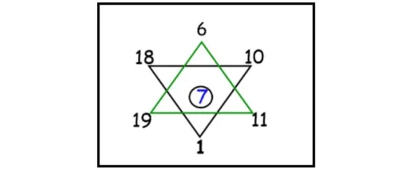 Записываем число 7 в гексаграмму в круг.
