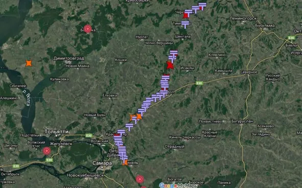 Но главное в том, что все эти крепости здесь выстроены в линию… и соединены стеной общей протяжённостью порядка 2000 км! В разных источниках она именуется Великой Заволжской стеной, Заволжским историческим валом, Ново-Закамской оборонительной линией. Стену прекрасно видно и сегодня со спутниковых снимков, как и её идеально ровные зубцы, расположенные через равные интервалы. Зубцы стены смотрят в основном в сторону запада.