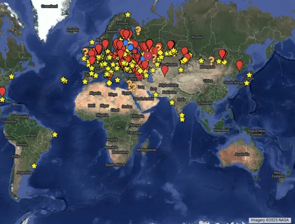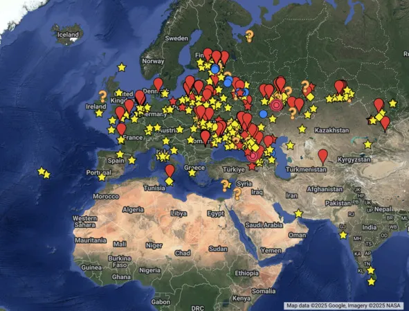Итак, если рассмотреть расположение крепостей-звёзд на карте планеты, то увидим наибольшую их концентрацию на Европейском континенте (см. карты 1, рис. 1). В самой же Европе они в основном сосредоточены в восточной её части (рис. 2). Почему же так произошло? По-видимому, для понимания этой ситуации необходимо прояснить исторические процессы, которые имели место на планете Земля при возникновении нынешней цивилизации. К сожалению, наука не даст нам никаких полезных сведений на этот счёт: вся официальная версия древней истории человечества не соответствует действительности, т.к. сфальсифицирована, и мы при обращении к науке реально не сможем выйти на понимание сути вещей, касающихся крепостей-звёзд.