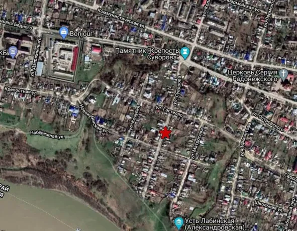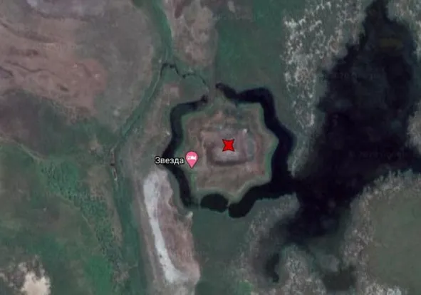 Звезда крепость на предполагаемом месте расположения города-форпоста Терки (Терский город, Терский острог), построенного русскими войсками на Северном Кавказе в XVI – XVII вв. Между современными населёнными пунктами Мангулаул, Новый Бирюзяк, Старотеречное (Дагестан)