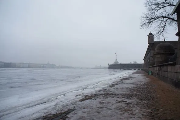 Башенки Петропавловской крепости (слева с круглым окошком, две другие – рядом с флагом).