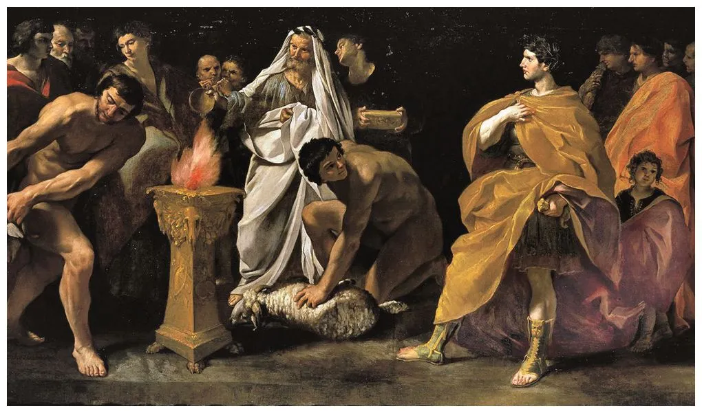 Гаруспик приносит в жертву животное на картине Джованни ди Стефано Ланфранко, ок. 1635 (Мадрид, галерея Прадо)