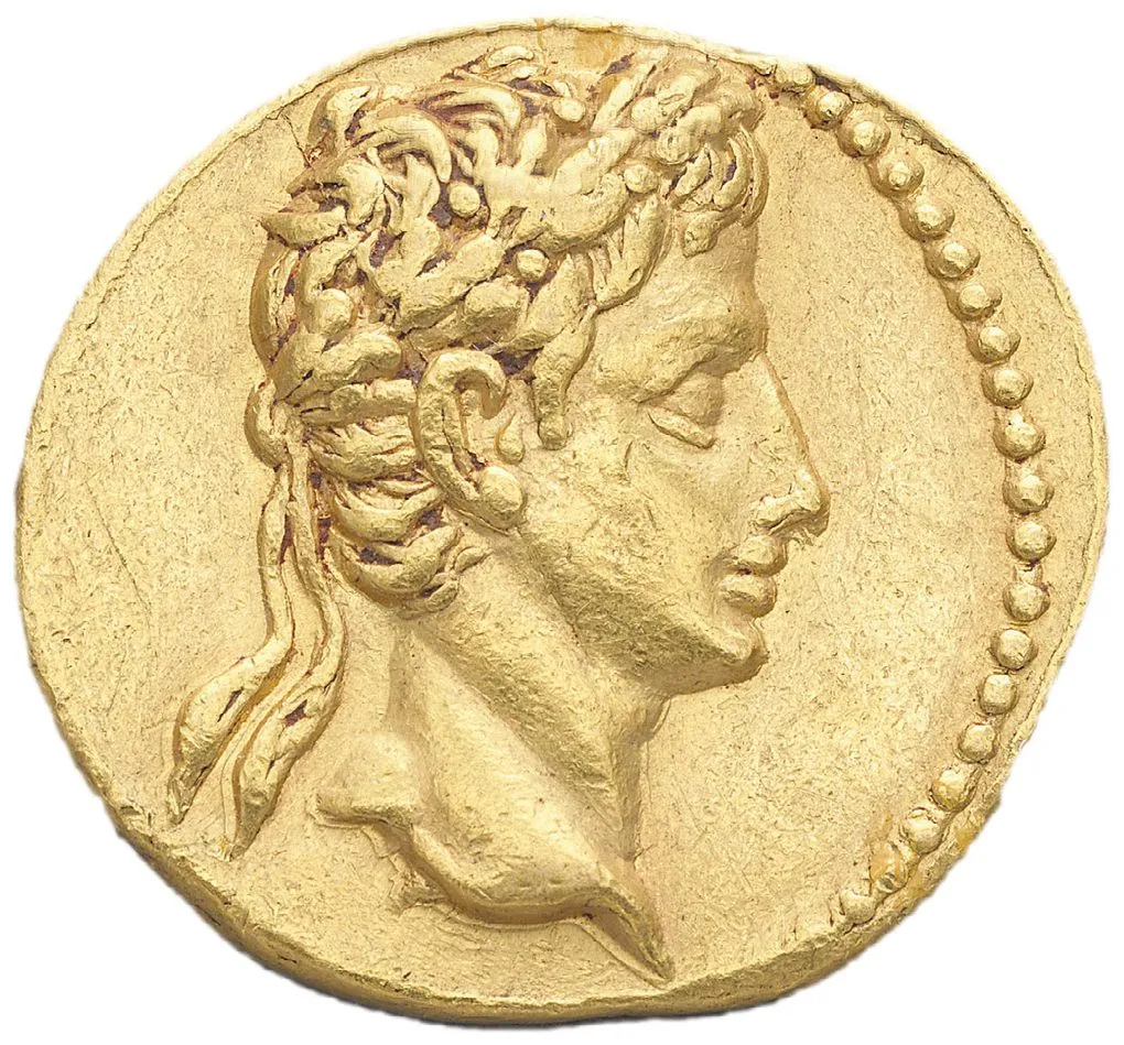 Ауреус, золотая монета с изображением императора Августа, отчеканена в XX–XIX веках до н. э. (Нью-Йорк, Метрополитен-музей)