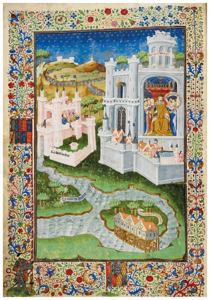 Египетский фараон и астролог Нектанеб в Вавилоне. Миниатюра из манускрипта Шрусбери (Shrewsbury Book), 1444–1445