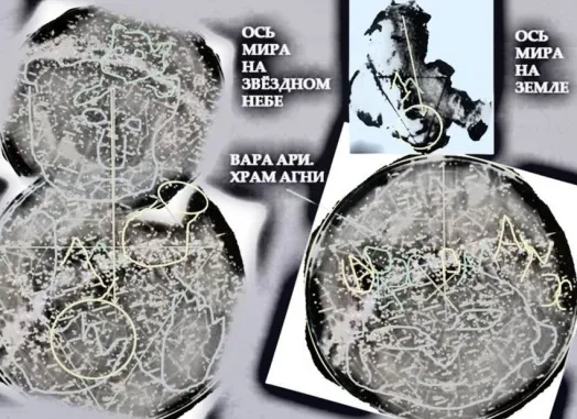 Совпадают очертания кувшинов и шар в левой (от читателя) лапе. На Южном полушарии звёздного неба явно виден текст: «Вара (ковчег) ари. Храм агни (огня)». Это ли не чудо? Как тут не вспомнить о 32 богатырях во главе с 33-им дядькой Черномором в творении А.С. Пушкина «Сказка о царе Салтане»? Черномор – владыка чёрного, тёмного моря космоса. И на рельефе Земли наберётся 32 портрета ариев, большинство из которых уже показаны в моих предыдущих книгах. Теперь перед вами новые портреты (здесь и далее зарисовки автора со спутниковых карт):