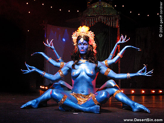 Кали-разрушительница, индусская богиня смерти и истребления, безусловно, занимает первое место среди самых отвратительных богинь. Жуткая богиня родилась в то время, когда индусские божества сражались с целой армией демонов во главе с их королем, Рактабиджа. Проблема заключалась в том, что Рактабиджа обладал таким могуществом, что когда он проливал хотя бы одну каплю крови, из нее появлялась тысяча демонов, так что можете себе представить, каково приходилось приличным божествам! Богов вела в битву Дурга, первая богиня во вселенной, которая была далеко не трусихой. Это была свирепая и прекрасная амазонка, ездившая верхом на тигре, но даже она была бессильна против огромной армии демонов, которая все время увеличивалась. Увидев, как из пролитой крови Рактабиджи появилась еще одна тысяча демонов, Дурга гневно насупилась, и когда ее брови сошлись на переносице, возникла Кали, рожденная из ярости Дурги. Кали спрыгнула на землю и перекрутилась вокруг себя. Она была рождена, чтобы убивать! Ее кроваво-красные губы раздвинулись в зловещей усмешке: «Привет, дорогая, — проворковала она. — Вот я и дома!». Довольная собственным творением, Дурга оставила сражение в умелых руках Кали — во всех четырех руках — и вместе с другими богами отошла в сторону и принялась наблюдать за развитием событий.