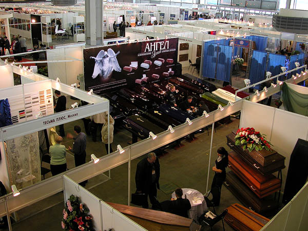 Гробы, венки, памятники, урны, катафалки, кремуляторы, всякая прочая бахрома и погребальные лебедки. Людно. Весело.